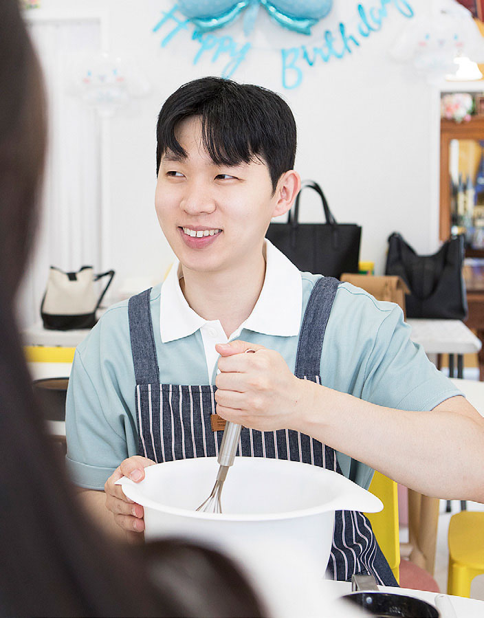 “이틀 뒤에 엄마 생일이 있는데, 그날 손수 만든 케이크로 축하를 전하고 싶다는 바람으로 왔어요”라는 이한나 수어통역사. 그런데 사실 그가 먼저 나서서 케이크 만들기를 신청한 것은 아니다. 전연주 교사와 오호준 대리가 이한나 수어통역사를 원데이 클래스 파트너로 선택해 이름을 올린 것. 이들 셋은 2022년 발달장애 전문박람회 ‘오티즘 엑스포’의 지원 인력으로 함께하면서 인연을 맺었고, 이후 능력개발국에서 다시 만난 것은 오래되지 않았다. 하지만 그 사이사이 행사나 간담회에서 만나던 것이 차곡차곡 쌓여 오늘날 두터운 사이가 되었다고. 특히 오호준 대리는 이한나 수어통역사의 업무를 이어받으면서 그를 늘 찾는다고 말한다. “분리불안증세가 있을 정도예요. 그래서 오늘도 함께 왔어요”라고 짐짓 농담을 건네지만, 우스갯소리 너머 이들만의 동료애가 엿보인다. ‘한 지붕 아래 두 가족’이라면 맞을까. 능력개발국은 운영부와 지원부로 나뉘어져 있고, 전연주 교사는 운영부, 오호준 대리와 이한나 수어통역사는 지원부에 소속되어 있다. “그런데 서로 현관문을 따로 쓰지 않는다고 할까요. 업무마다 색깔과 특성이 다른데도 서로 소통이 원활한 것이 장점이에요”라며 밝게 말하는 이들. 여기에 덧붙이는 한마디. “주중이었으면 동료들과 케이크를 나눠 먹었을 텐데 이제 주말이라 그러지 못하는 게 아쉽네요.(웃음)”-
