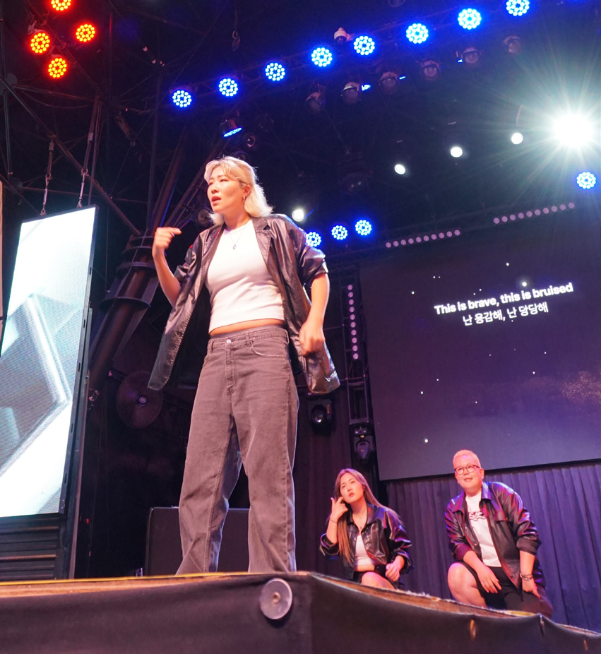 “수어로만 전할 수 있는 특별한 요소가 무엇인지 늘 연구했어요. 관객에게도 계속 질문을 던졌죠. 농인이 자신의 언어로 랩을 자유롭게 표현할 수 있는 공간은 어디에도 없었고, 결국 무대 위에서 관객과 부딪히며 얻은 경험들이 저만의 언어가 되었어요.”