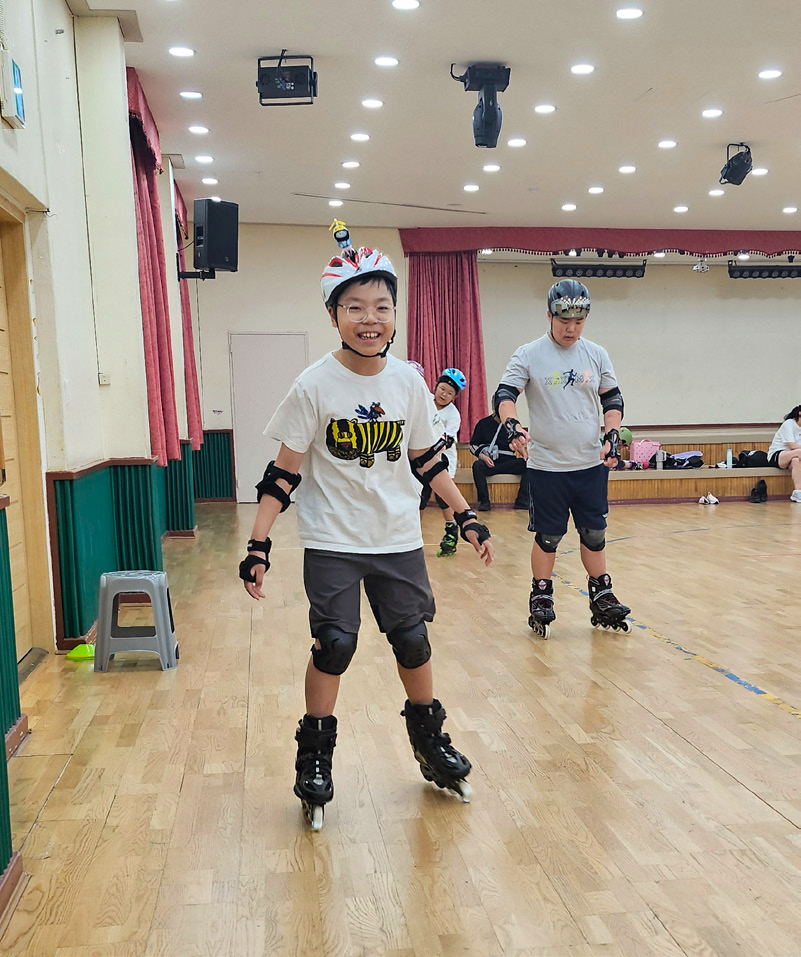 처음 인라인을 신었을 때 아이들은 중심을 잡지 못해 자꾸 넘어졌다. 헬멧을 쓰는 것도 버겁고, 강당에 울려 퍼지는 소리에 예민해 눈물을 흘리기도 했다. 그러나 넘어짐은 곧 배움의 시간이 되었다. 발달이 느려 걷는 것조차 힘들었던 아이들이 바퀴 위에서 균형을 잡고, 속도를 줄이거나 장애물을 피해 가는 법을 하나씩 익히면서 눈빛이 달라졌다.