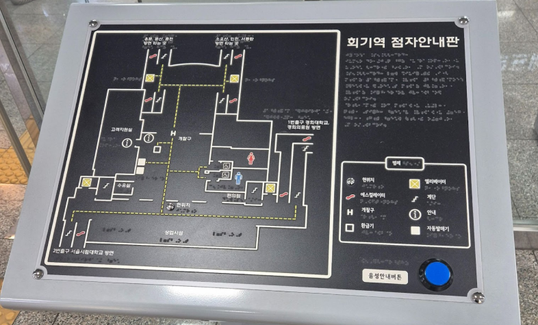 역시 시야에 잘 들어오지 않는 곳에 설치돼 있다. 대형 환승역인 만큼 향후 시각·청각 정보를 통합한 다감각 안내 체계 구축이 필요해 보인다.